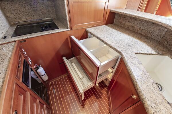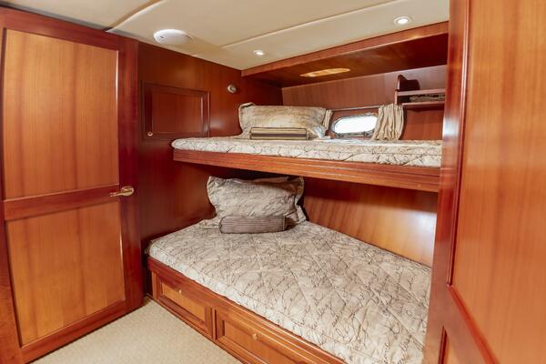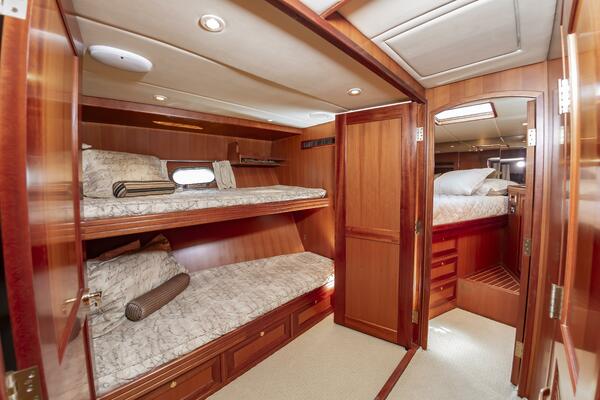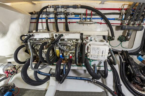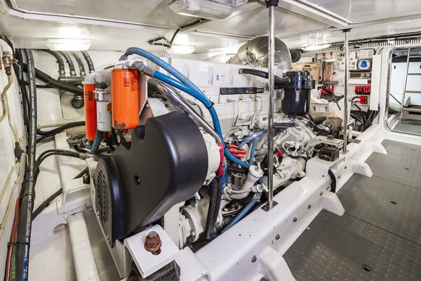With low engine hours and a comprehensive service history, this turn-key yacht is prepared for its next adventure, whether it's leisurely coastal cruising or island-hopping. Navigation is effortless thanks to a bow thruster and hydraulic stabilizers, ensuring a comfortable ride even in varied sea conditions. The spacious three-stateroom layout, expansive flybridge, and fully equipped galley are designed for both comfortable passage-making and memorable entertaining. This is an opportunity to own a well-loved and ready-to-go yacht that offers the quality and comfort of a much larger vessel.