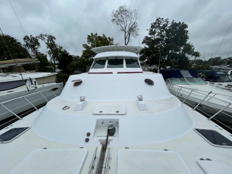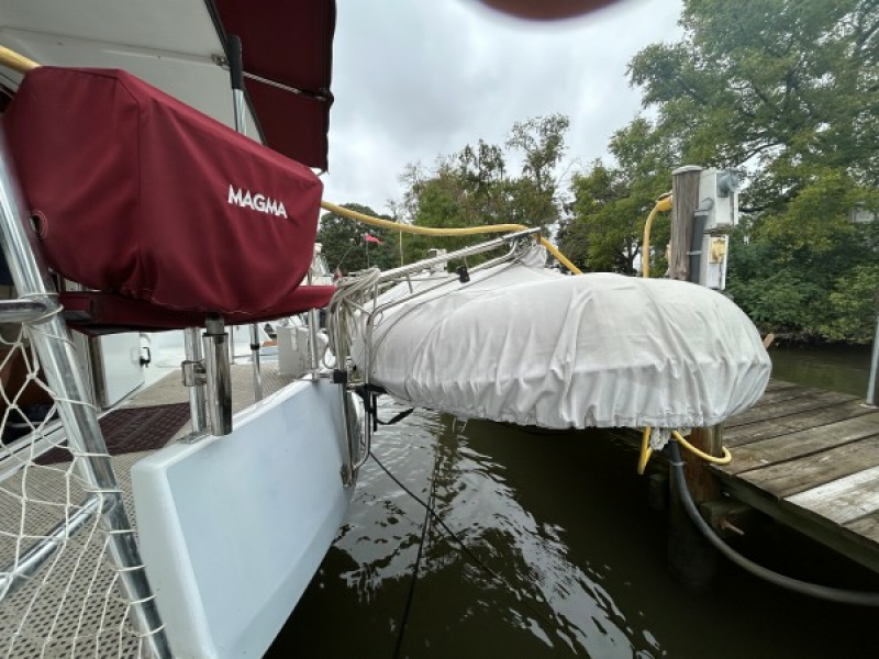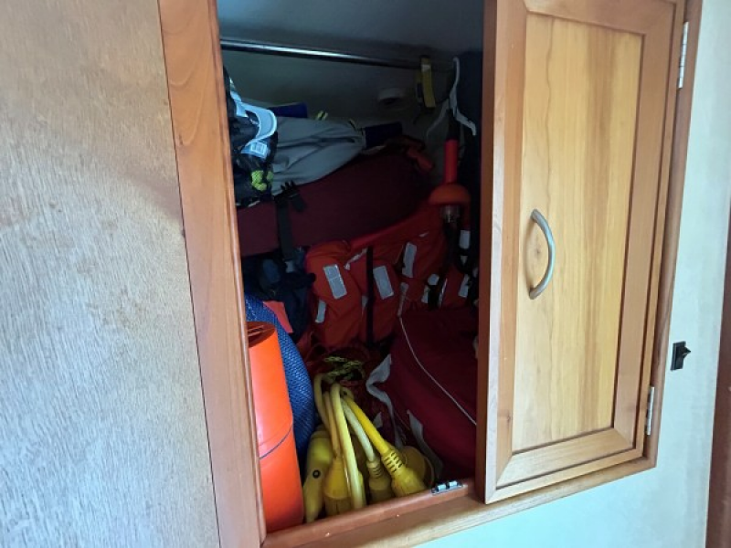 (3) large storage lockers in fore deck for mooring lines, fenders, spare anchor, and gas can for dinghy