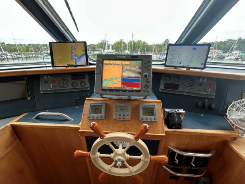 The pilothouse is dedicated to high standards of navigation and watch-keeping. It is independent of social areas of the boat. Care has been taken to ensure that persons on watch can preserve their night vision while other activities are taking place in social areas. All pilot house windows are tempered safety glass, there is excellent all-around visibility.